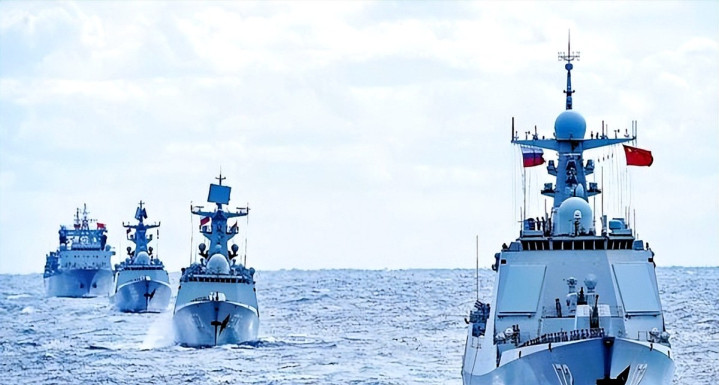 中间横着条钢铁防线——中俄联合舰队正在实弹演练的区域,恰恰覆盖了所有可能突袭的路径。